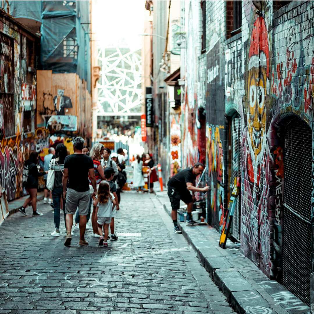 A nossa sugestão é iniciar o passeio pela estação de Flinders Street, caminhe pela Degraves Street e explore as belas arcadas e arte de rua da cidade em cada esquina – incluindo o grafiteiro Banksy, da Inglaterra. Dirija-se à Collins Street para visitar o requintado Block Arcade e aproveite para ter uma pausa na Little Bourke Street para um maravilhoso café. As vielas de Melbourne são icônicas e reforçam o espírito de criatividade ímpar da cidade. A sua arte de rua é internacionalmente reconhecida, misturada a uma vida noturna eclética, além da cena gastronômica e vinhos revigorantes, fazem de Melbourne a capital cultural da Austrália.