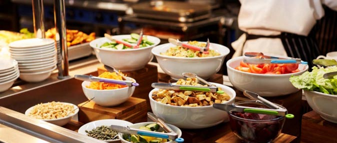 Café da manhã diariamente e almoço de seg a sex